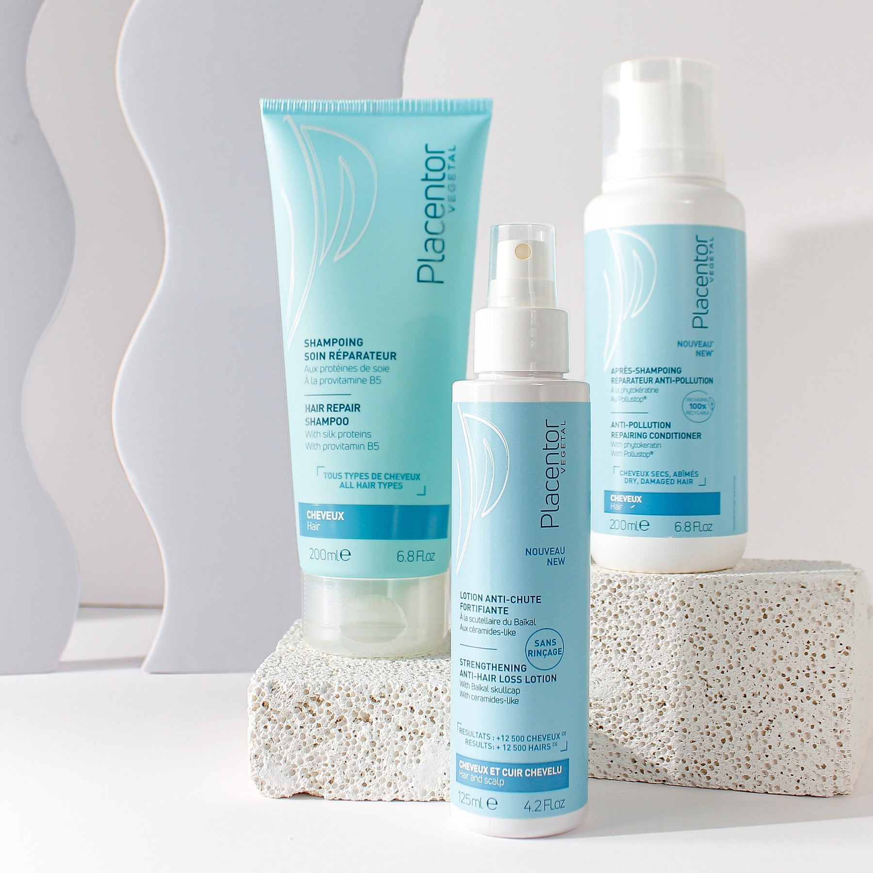 JEI KENČIATE NUO PLAUKŲ SLINKIMO, naudokite Placentor Vegetal stimuliuojamąjį losjoną nuo plaukų slinkimo.