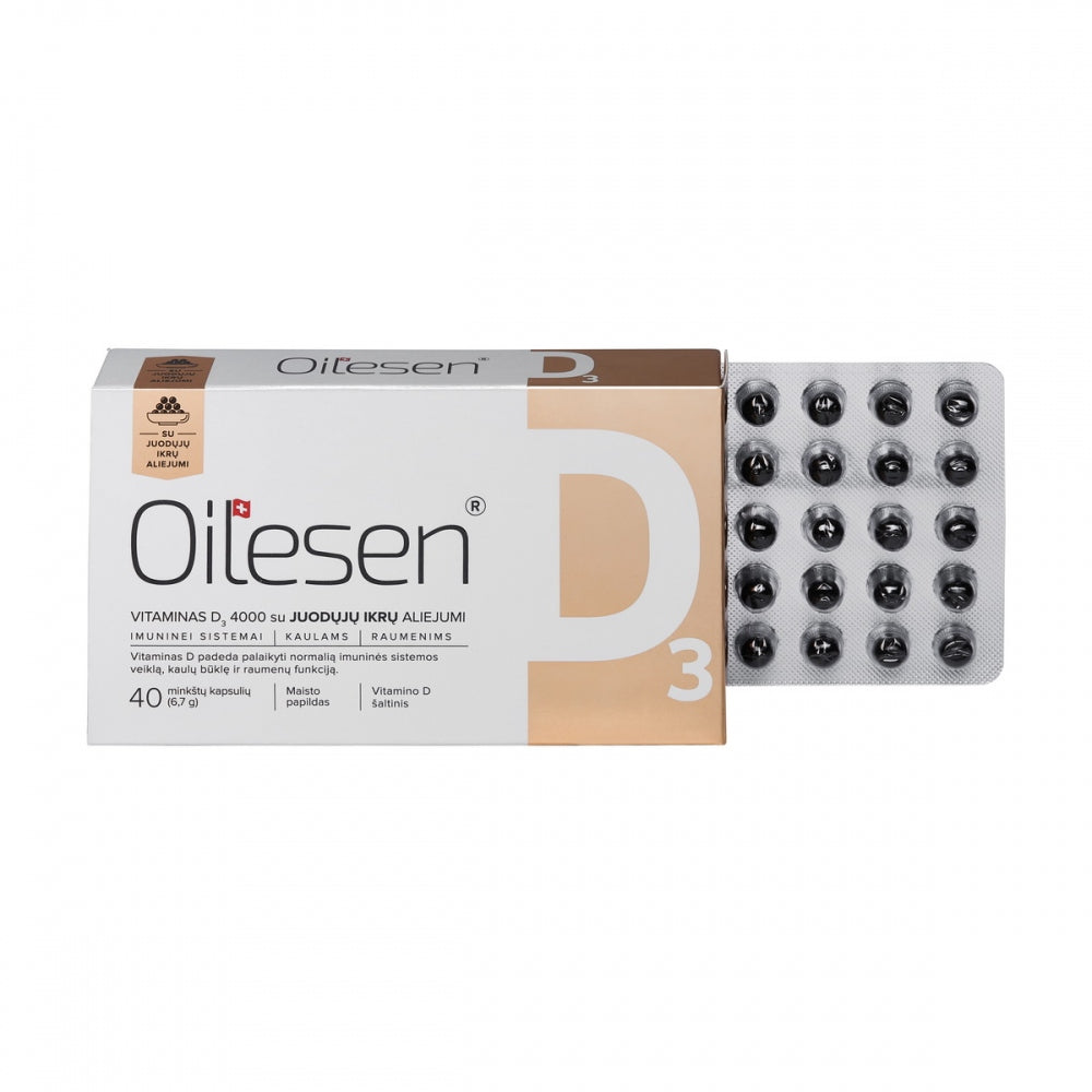 OILESEN Vitaminas D3 4000 su juodųjų ikrų aliejumi, kapsulės N40
