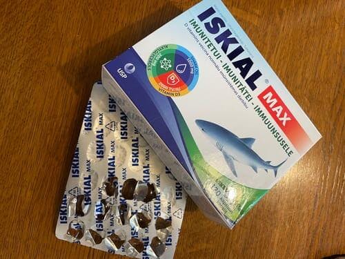 ISKIAL® MAX turtingos sudėties produktas, kuriame ryklio taukai papildyti didele doze vitamino D₃.