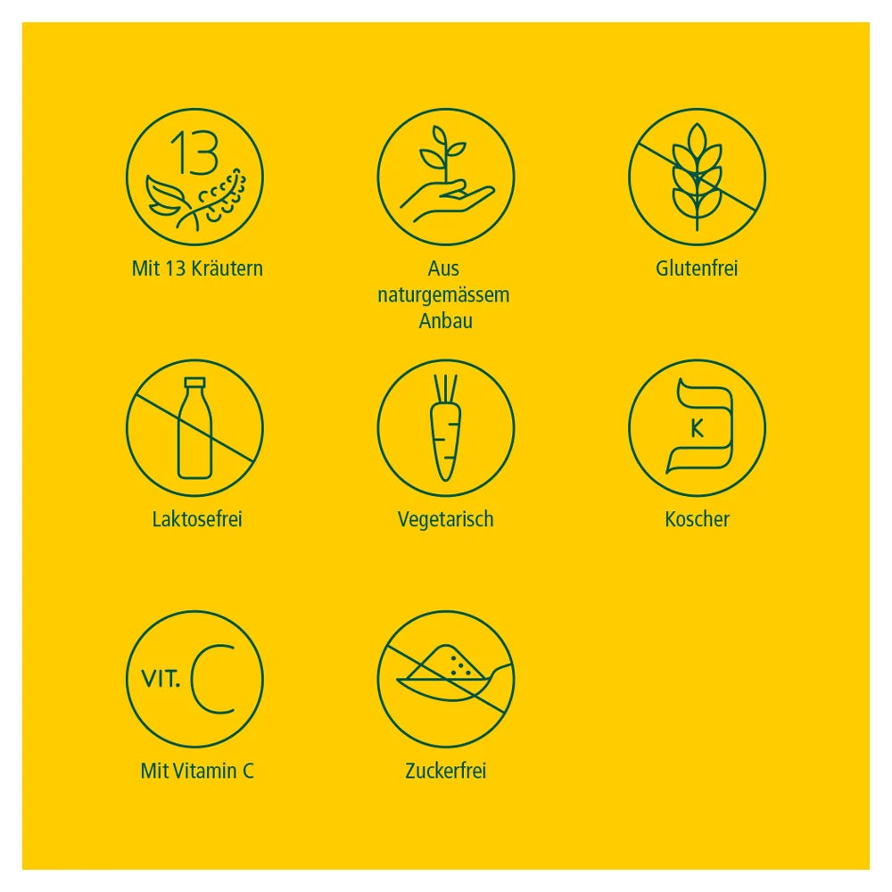 Grynasis kiekis: 75 g. Įspėjimas: vartojant dideliais kiekiais gali sukelti viduriavimą. Laikyti sausoje, apsaugotoje nuo tiesioginių saulės spindulių, vaikams nepasiekiamoje vietoje, ne aukštesnėje negu 25ºC temperatūroje. Gamintojas: Ricola AG, Šveicarija.